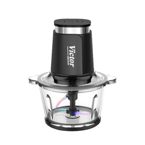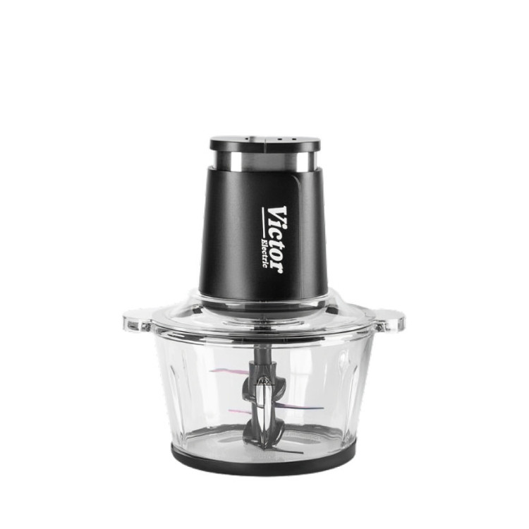 خردکن دوکاسه ویکتور مدل VK-1004CH اورجینال | خردکن پیرکس ۲ لیتری با موتور 900وات و تیغه نانو تیتانیوم
